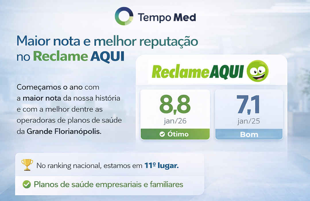 O reposicionamento estratégico adotado pela Tempo Med ao longo dos últimos meses já se reflete de forma objetiva na percepção dos consumidores. Dados consolidados do portal Reclame Aqui mostram uma evolução consistente dos indicadores ao longo de 2025, culminando em avaliação “Ótima”, com notas que chegaram a 8,5 em novembro e dezembro de 2025 e 8,8 em janeiro de 2026, desempenho superior ao de concorrentes relevantes do mercado de planos de saúde na grande Florianópolis, que estão com nota 8,2.